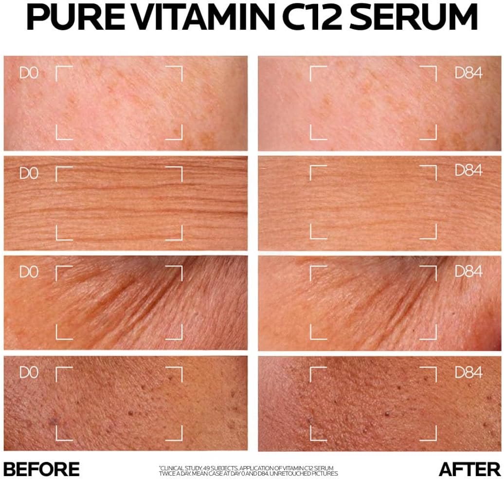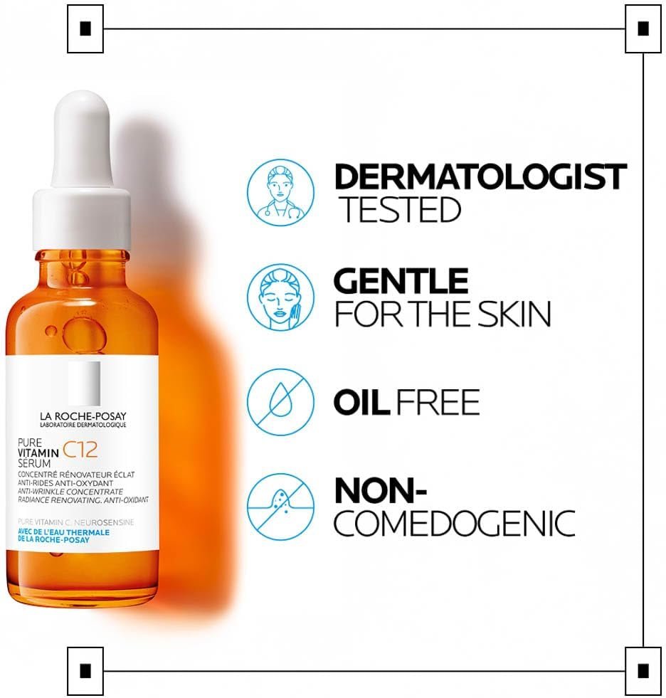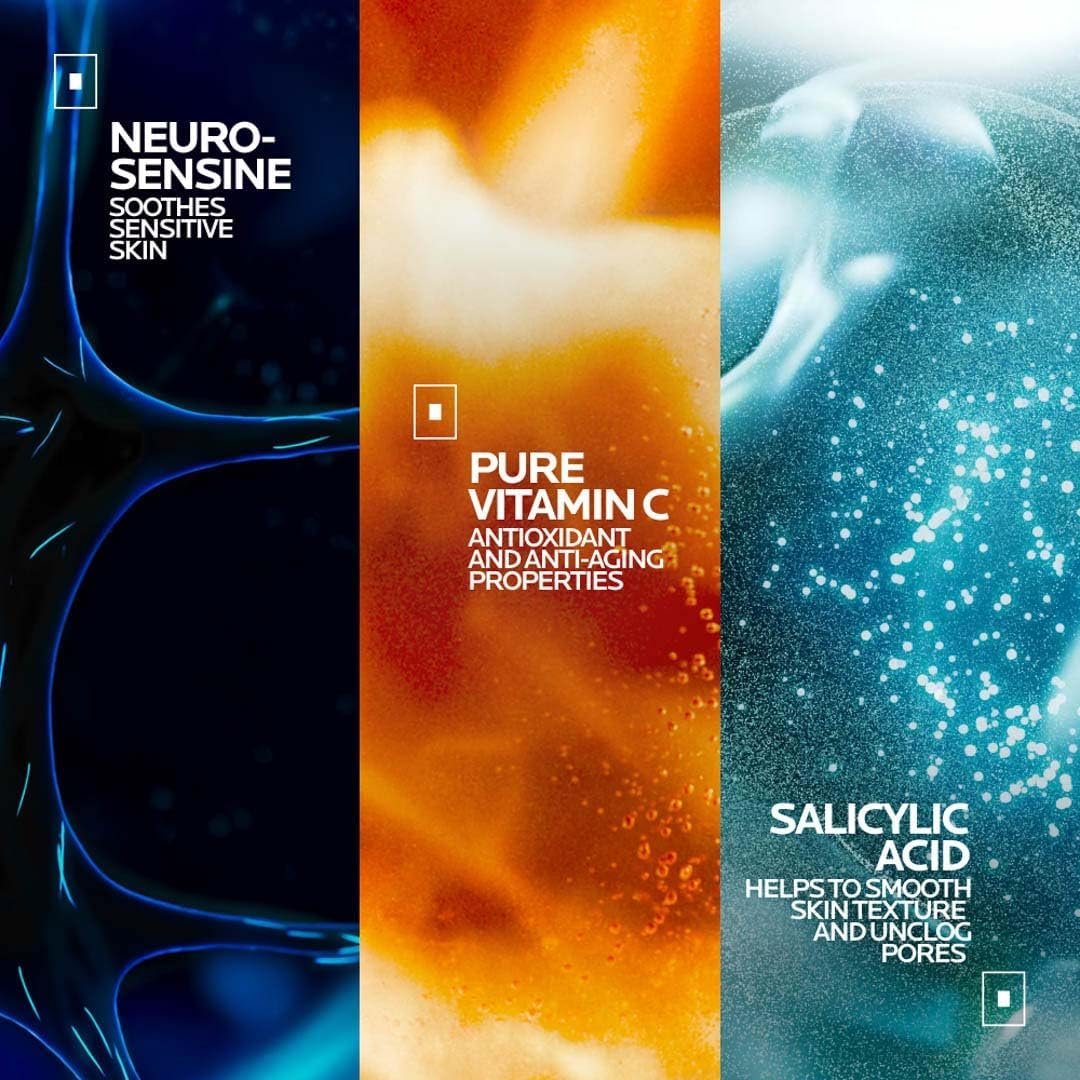 لاروش بوزيه %12 فيتامين سي سيروم الوجه المقاوم لعلامات التقدم بالسن النقي مع حمض الهيالورونيك وحمض الساليسيليك